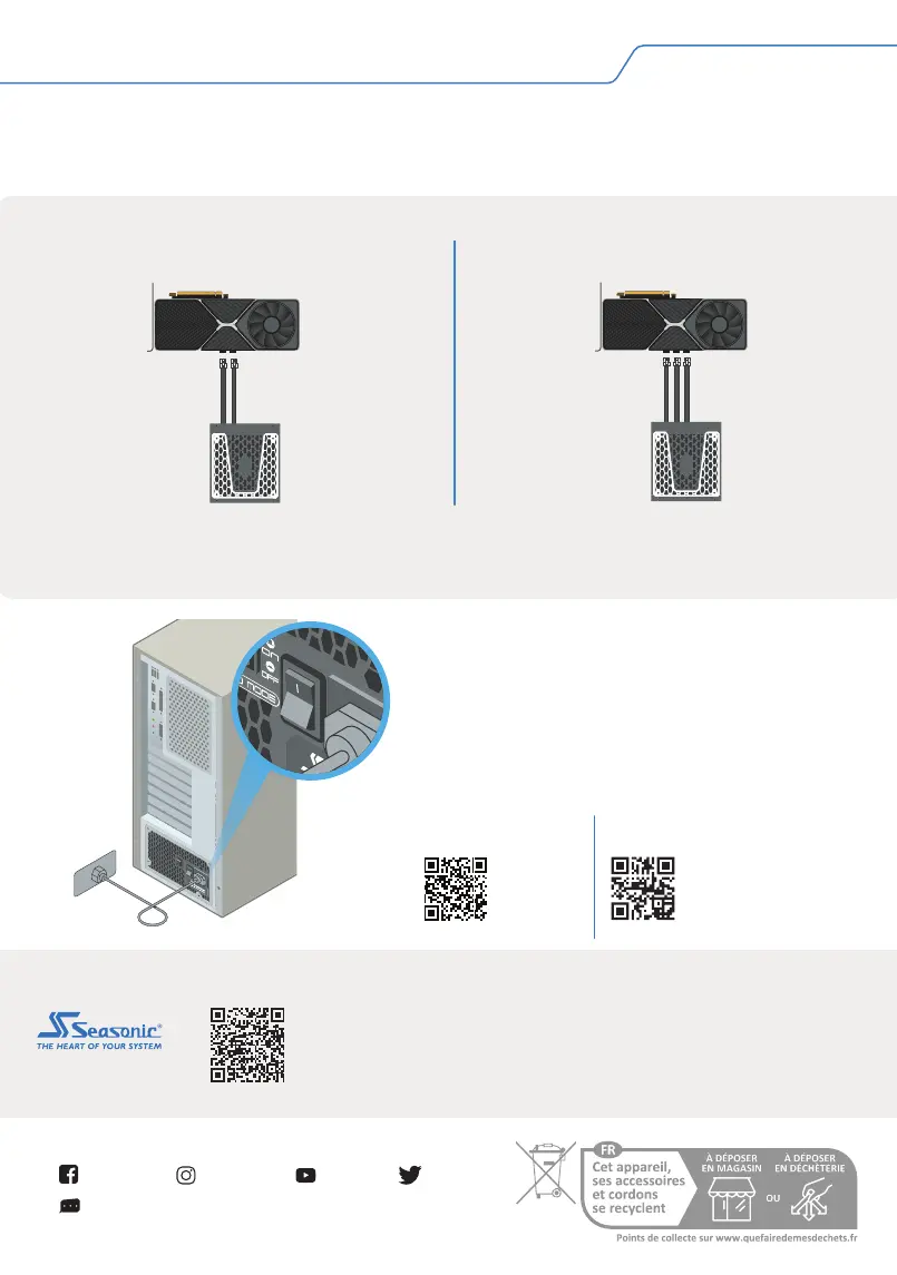 deux ou trois connecteurs PCIe. Seasonic recommande d’utiliser deux ou trois diérents