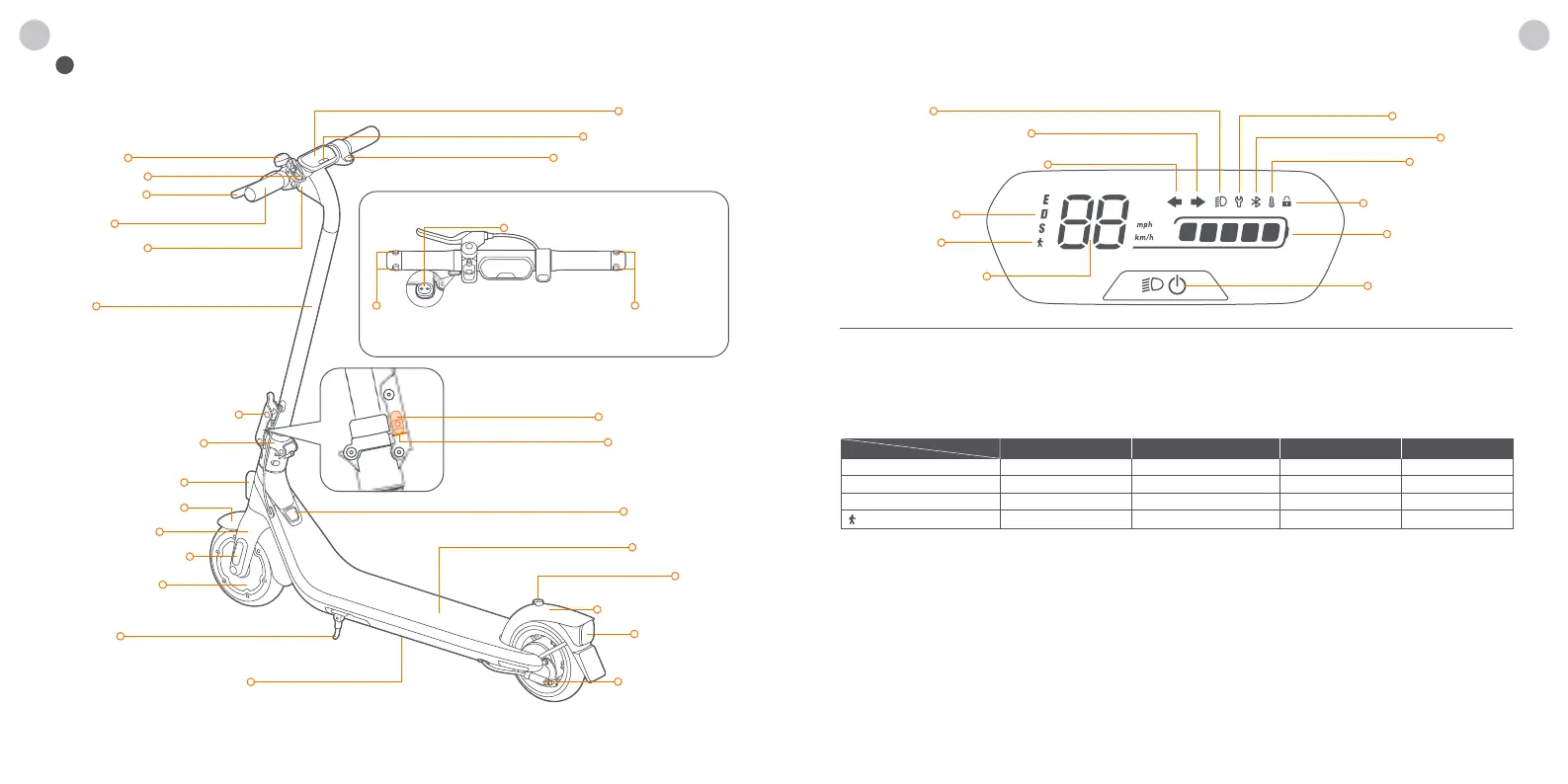 Bouton marche/arrêt : Appuyez sur le bouton pour allumer le scooter ; appuyez et maintenez le bouton pendant 2 secondes pour