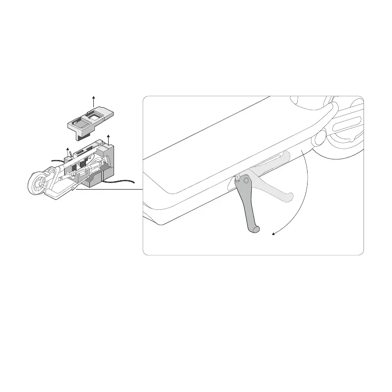 FR Détachez le velcro, retirez la doublure en mousse et dépliez la béquille.