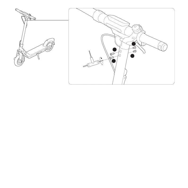FR Faites glisser le guidon et les fils dans la tige avec le feu de route vers l’avant. Installez les quatre vis dans l’ordre avec la