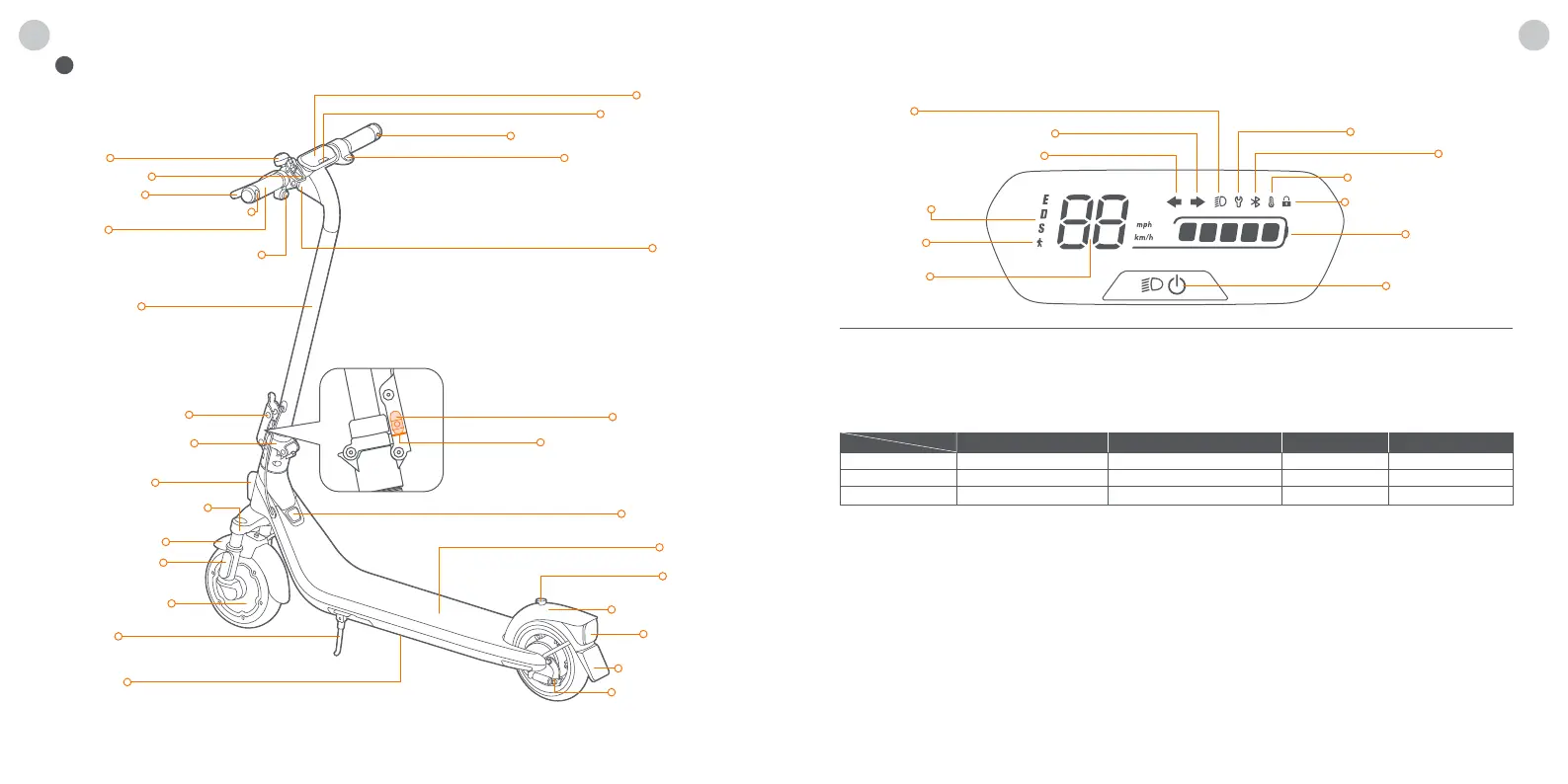 Ein-/Aus-Schalter: Drücken Sie den Schalter, um den Roller einzuschalten; halten Sie den Schalter 2 Sekunden lang gedrückt, um ihn auszuschalten.