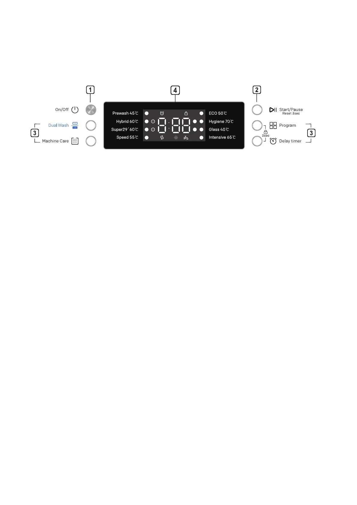 Press for 3 seconds to cancel the program and drain water.