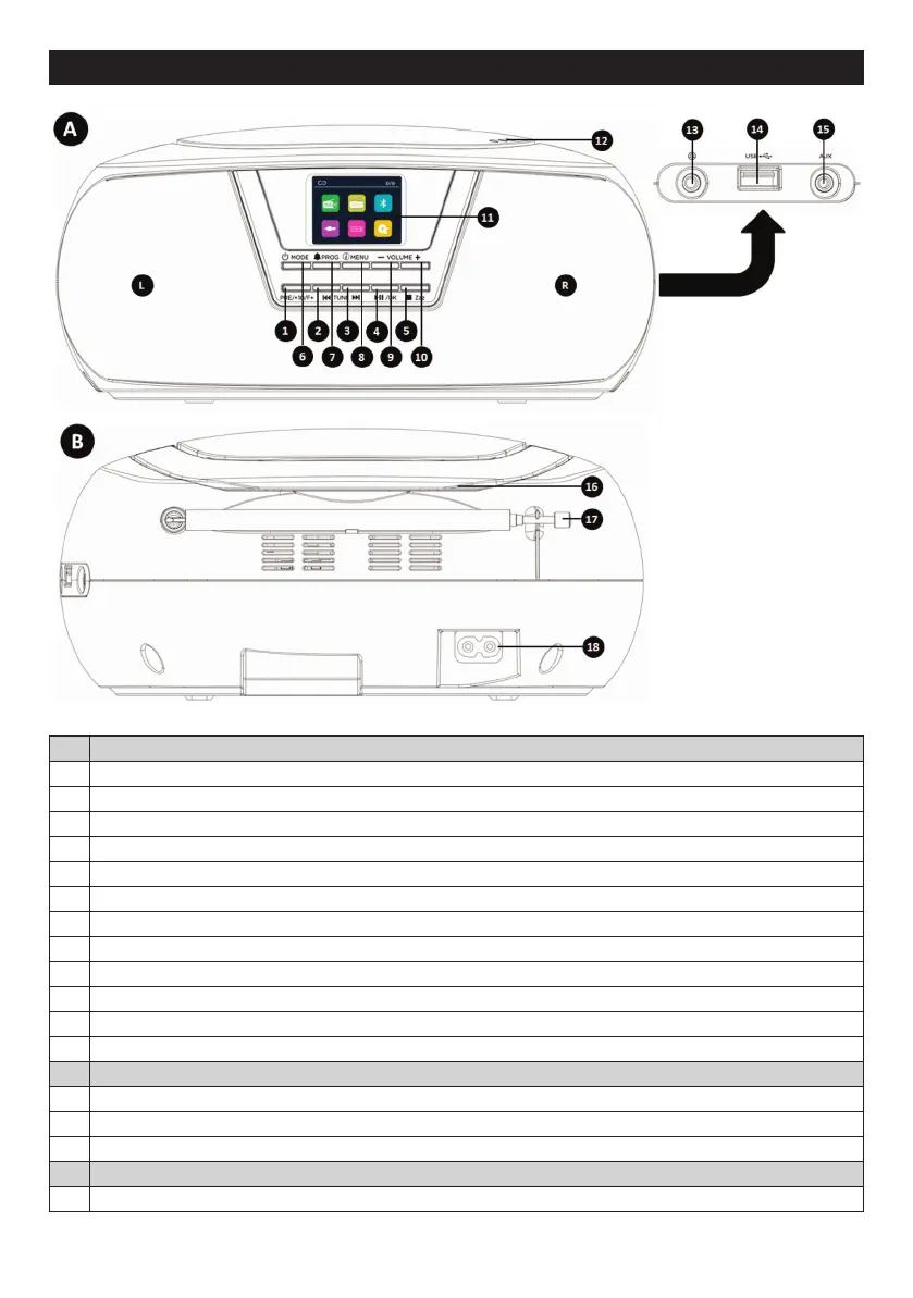 15 AUX-IN bemenet (3,5 mm audio jack)