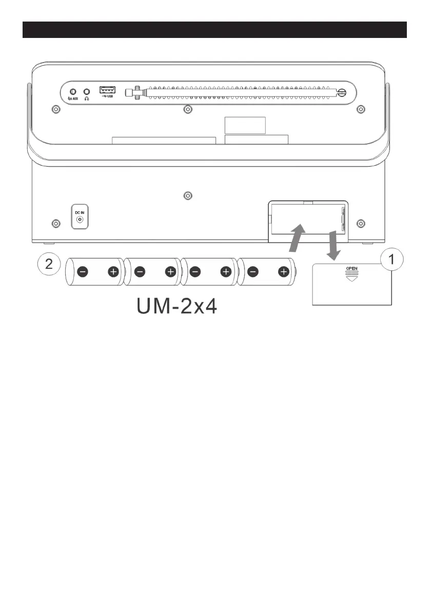 2. Vložte4batérieveľkosti„C“(UM-2aleboekvivalent)sasprávnoupolaritou.