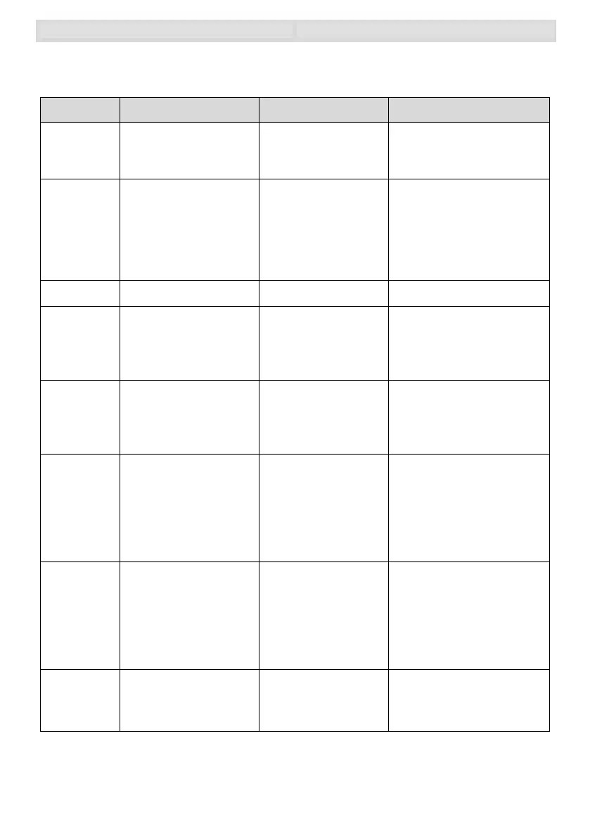 Display Meaning Possible causes Remedy