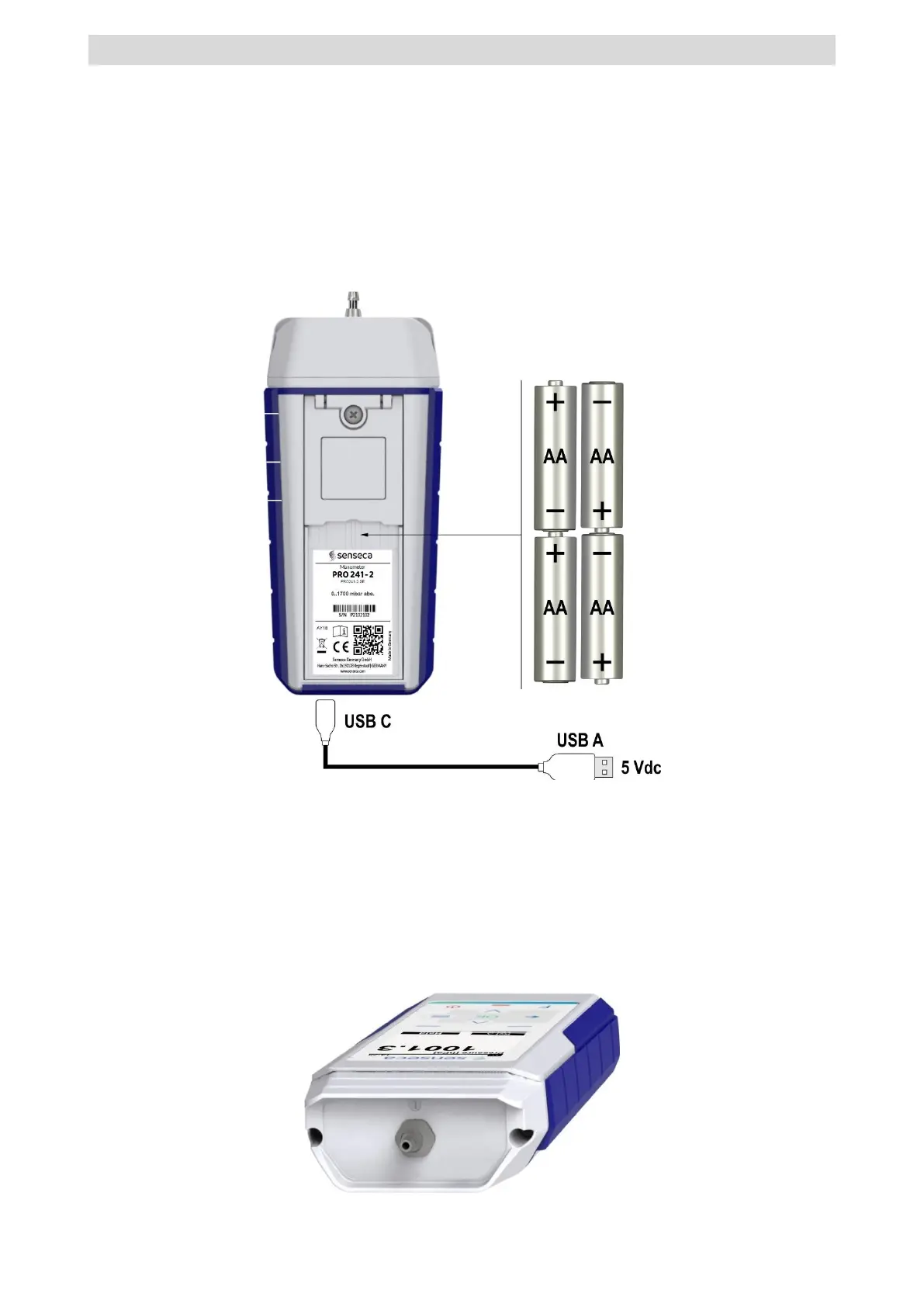 The instrument can also be powered via the USB-C port by a 5 Vdc standard power adapter or
