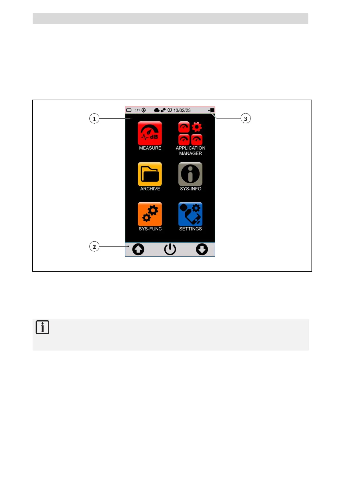 When XPT800 is turned on, the instrument displays the Home page, containing elements common to