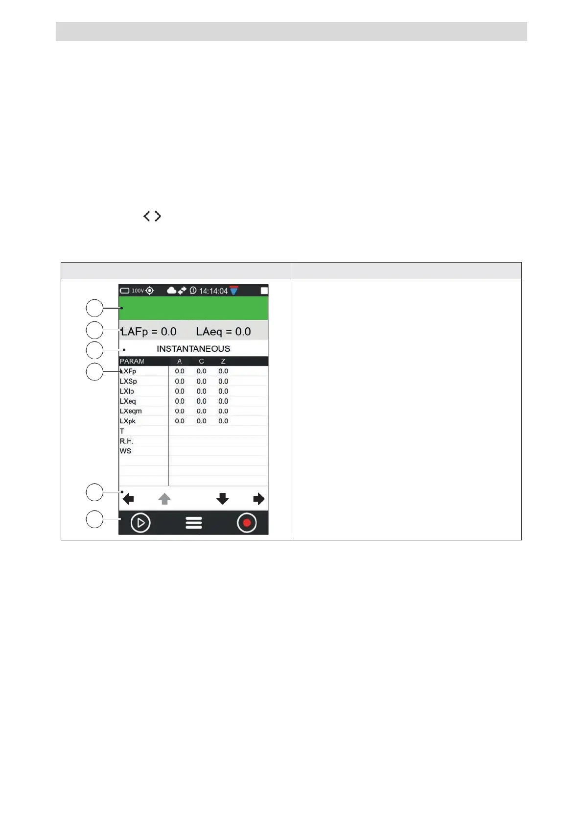 screens. Spectrum screen provides numerical values in octave bands or third of octave of acoustic pa-