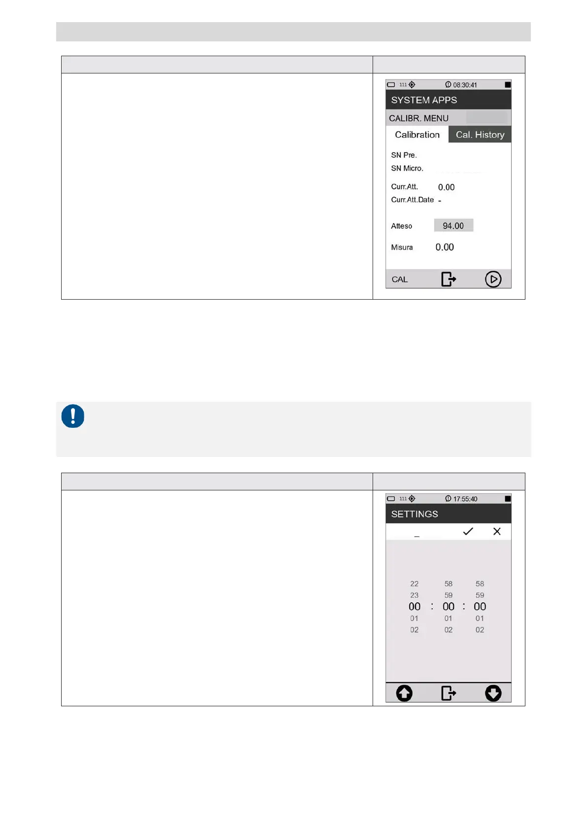 When the calibration is completed, the date, time and correction are updated. Access to the Calibration
