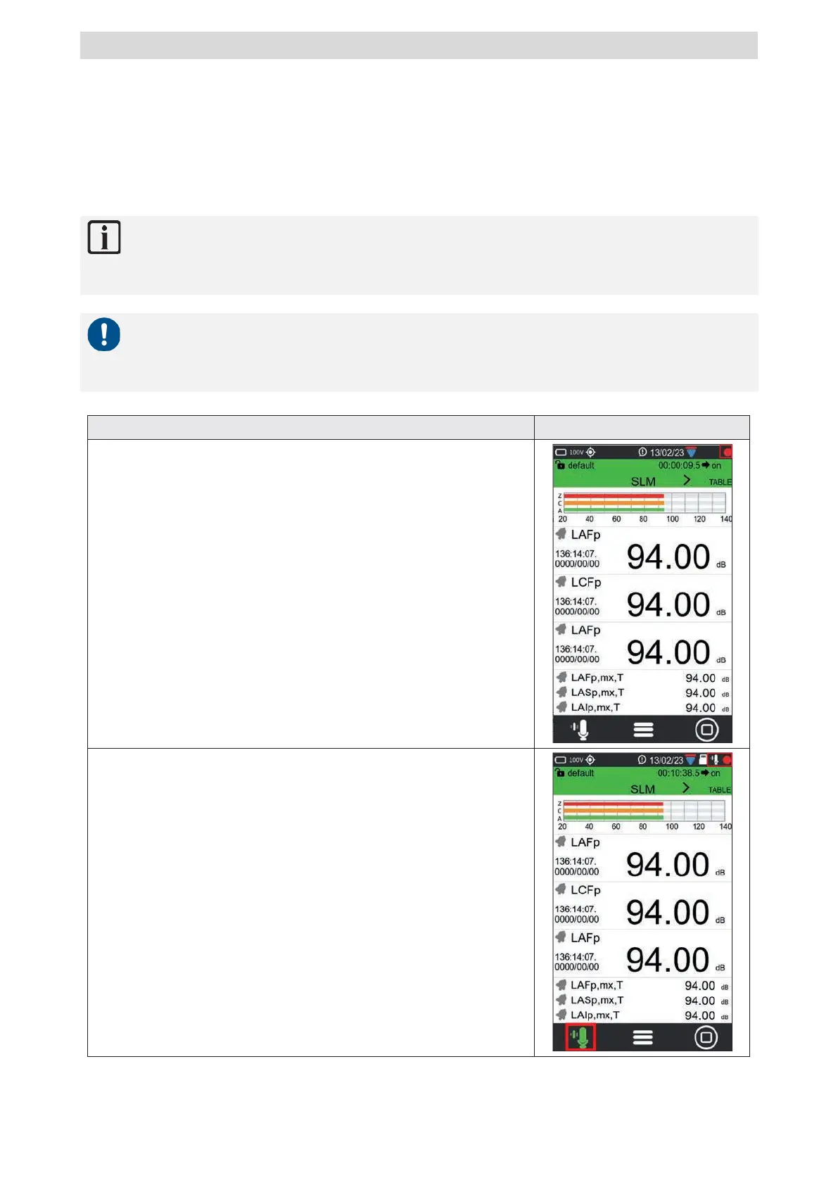 With this function, audio recording and measurement recording are carried out simul-