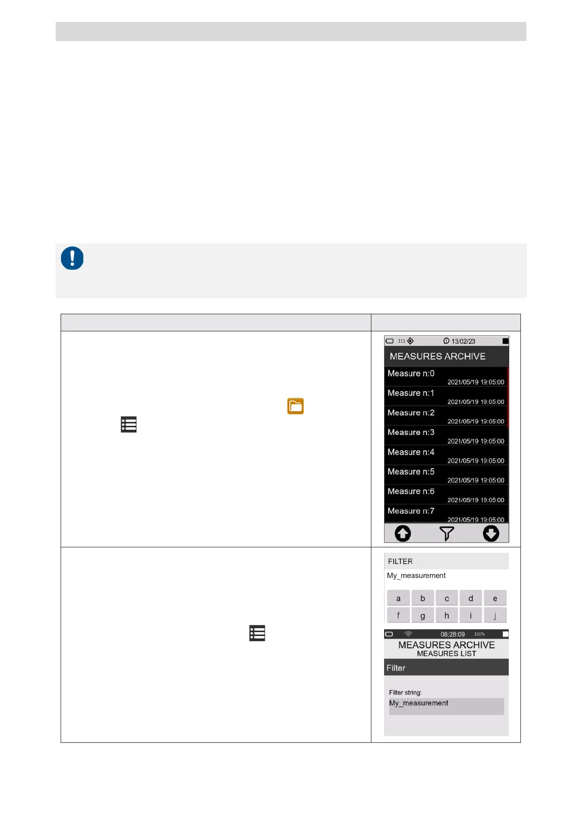 The measurement records made in datalogging mode are stored in the device and visible in preview