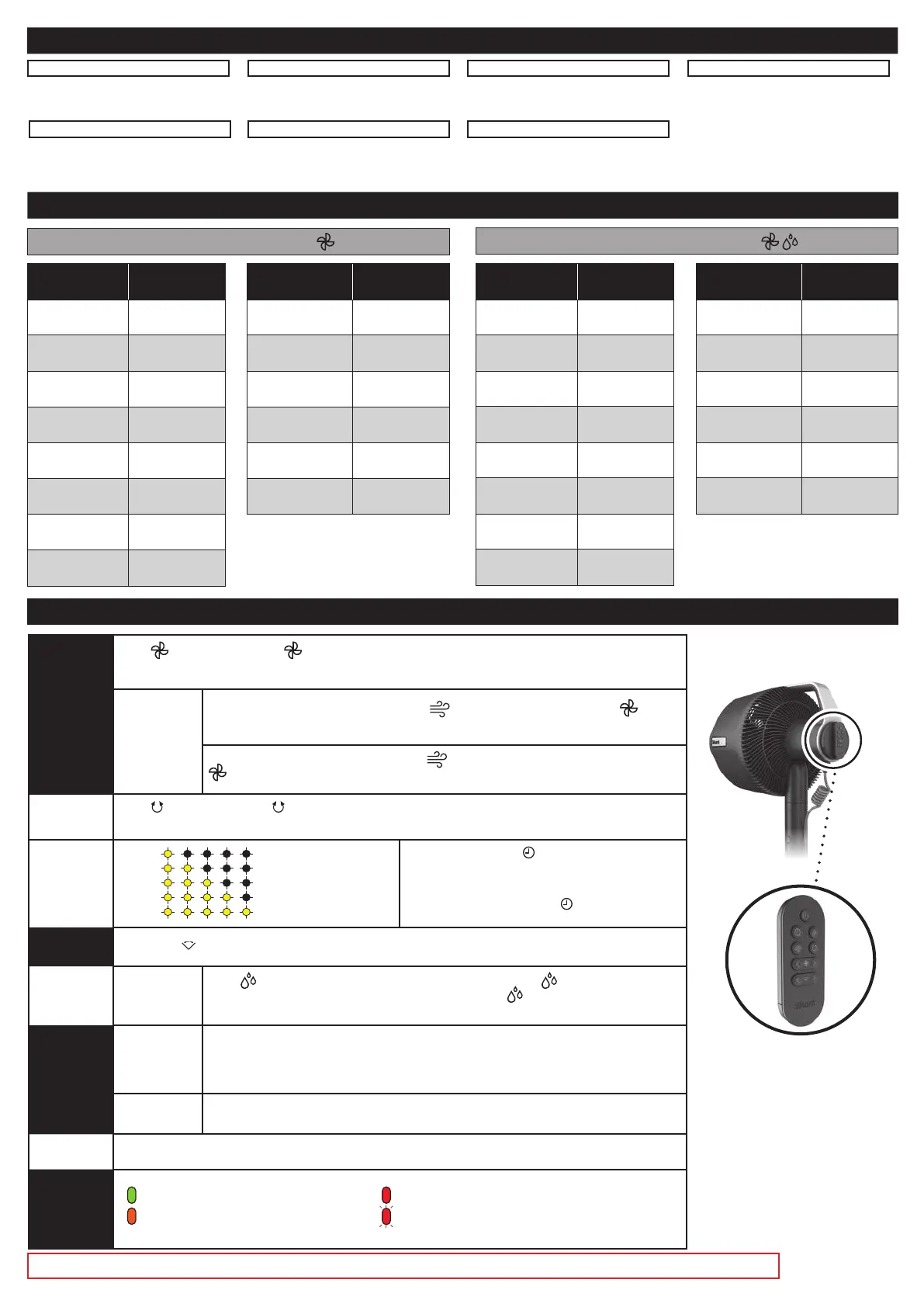 on the fan head or < > arrows on the remote to switch between fan speeds. LED lights