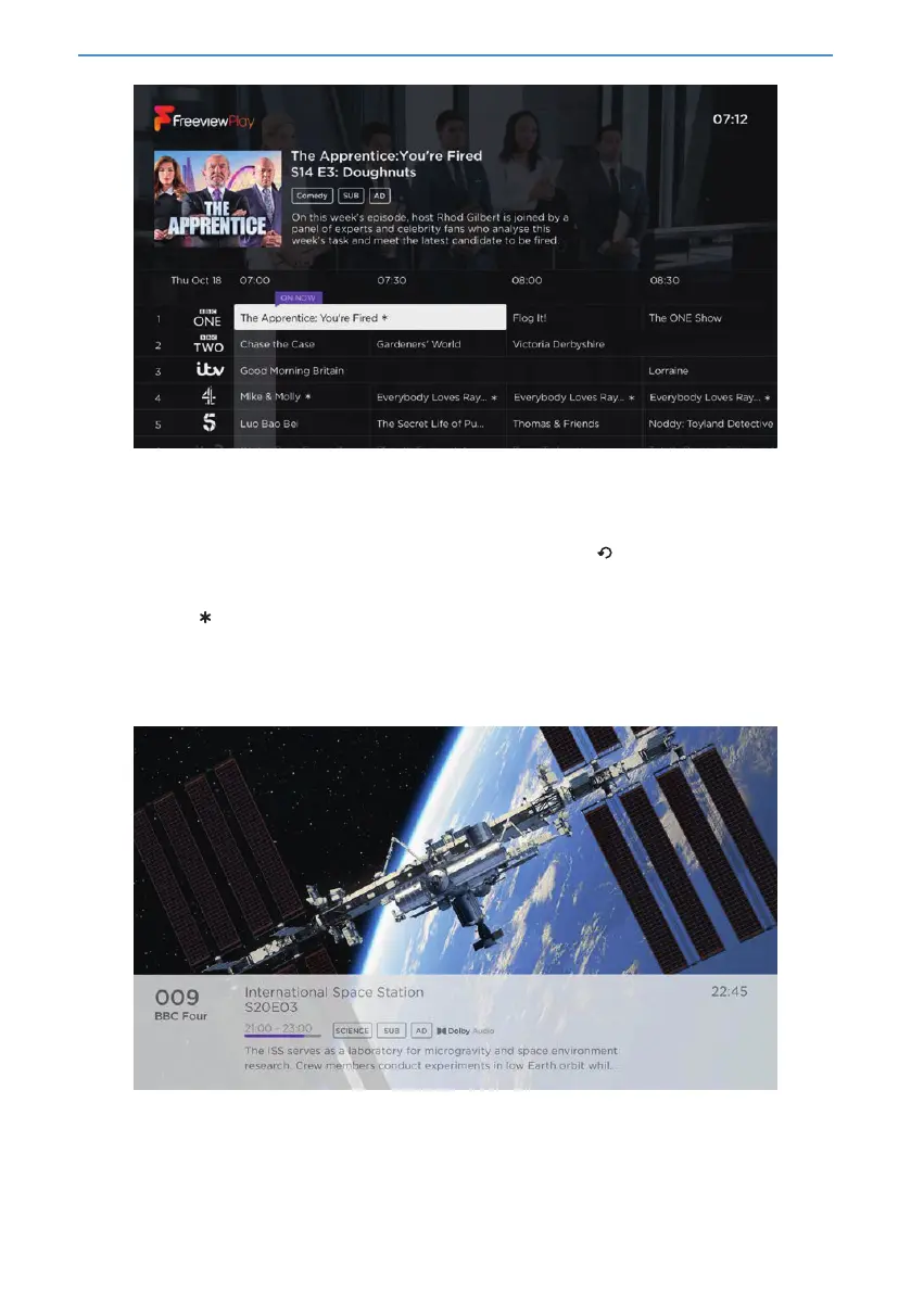 This banner shows the channel number, station name and signal strength, programme title, episode name and