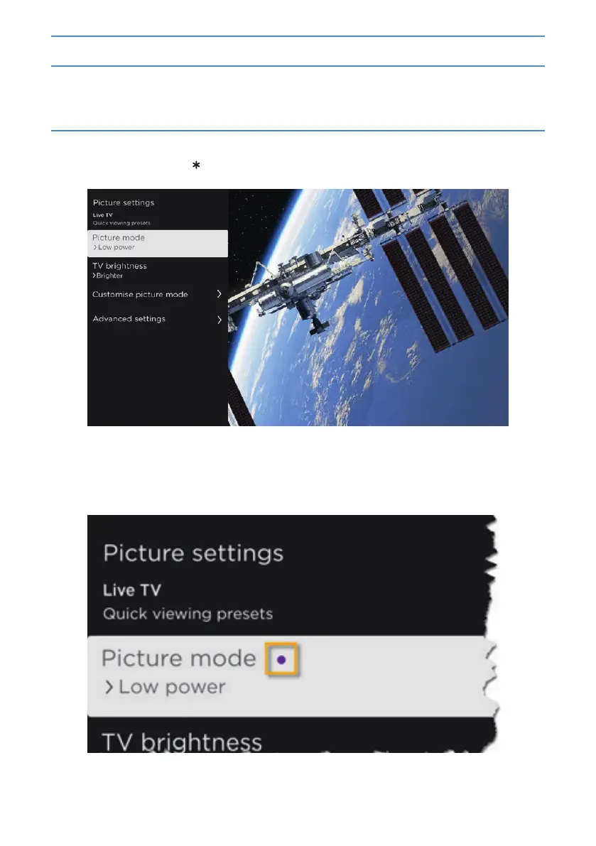 STAR to display the TV settings menu, then select Picture settings. The op-