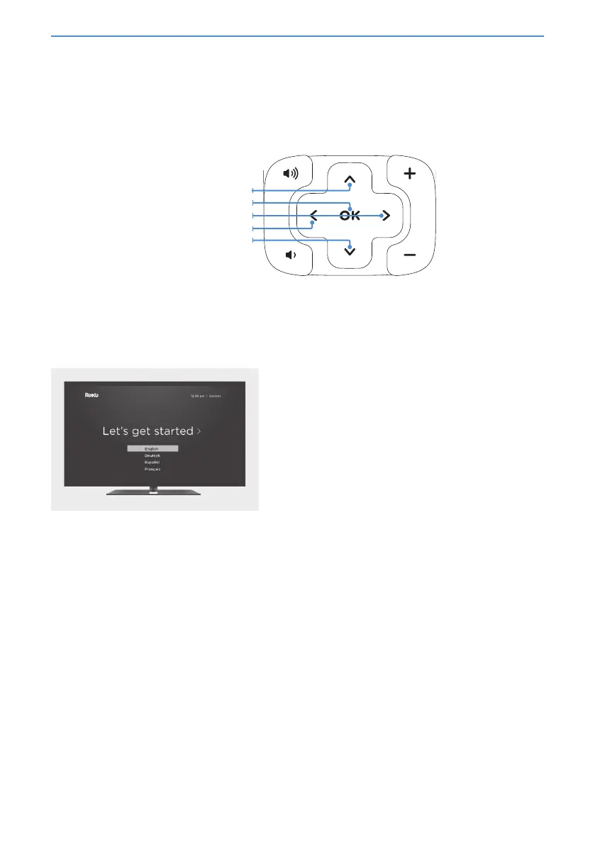 To navigate through the options when in the rst-time installation mode, use the buttons on your remote