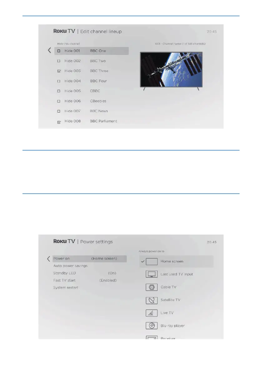 Power on settings tell the TV what to do when you turn on the power. To congure the power on settings, from