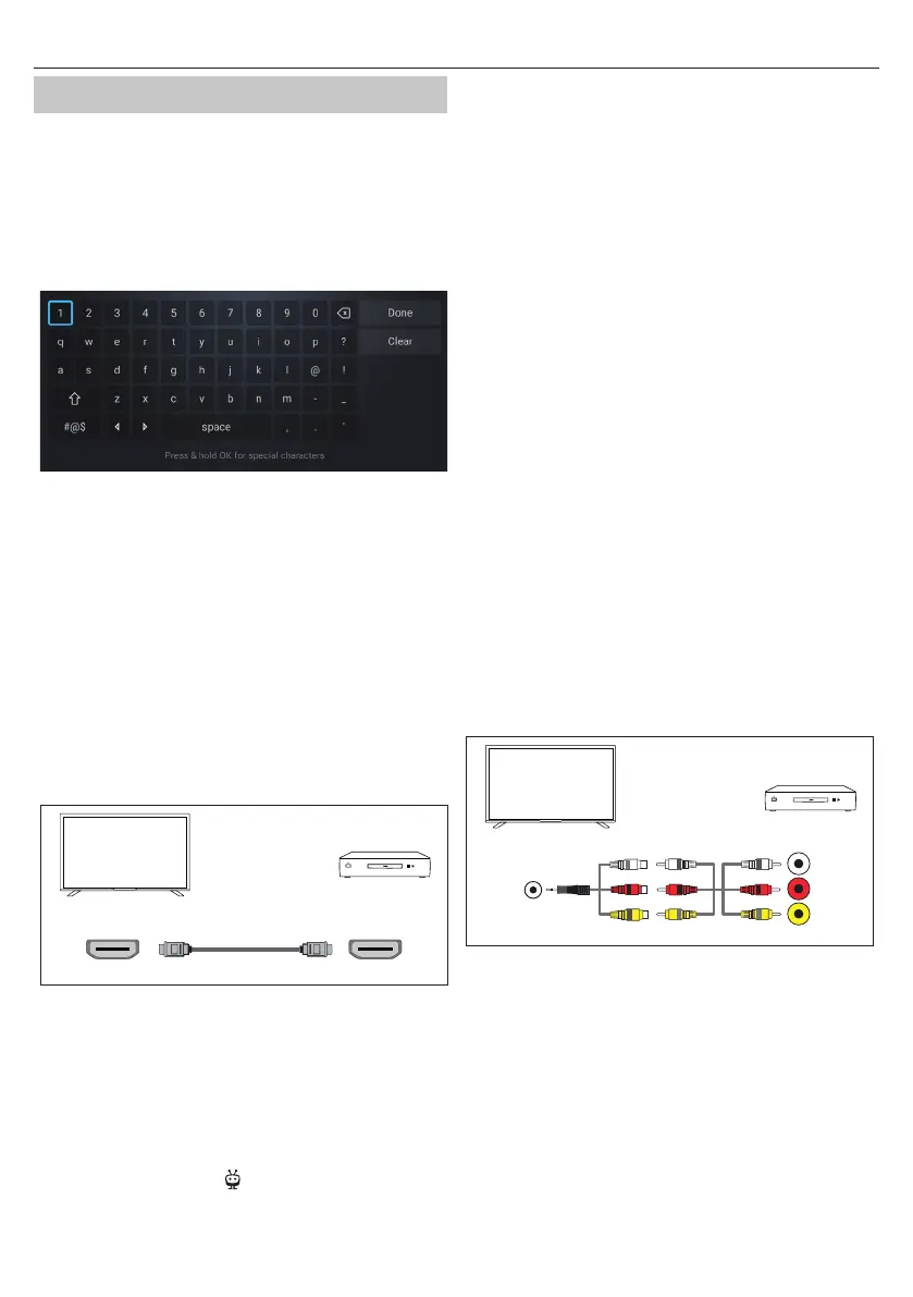 The on-screen keyboard lets you type text like a Wi-Fi password or movie