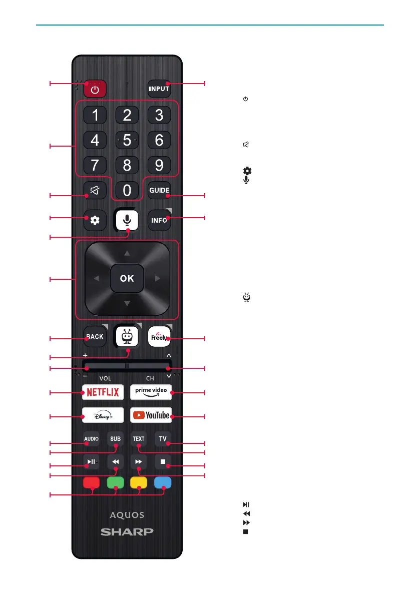 3. NUMBER BUTTONS – 0–9 to select a TV
