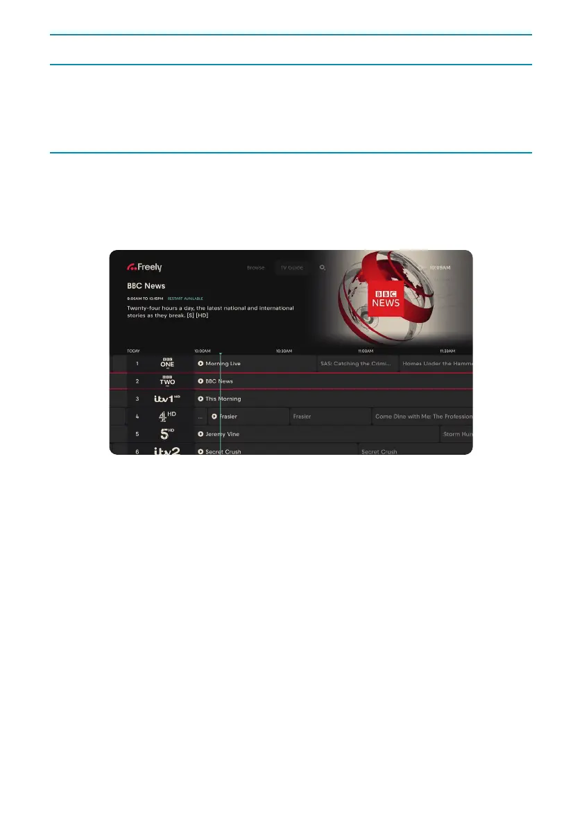 While using Freely, the Electronic Programme Guide (EPG) is available while in the Live TV mode.