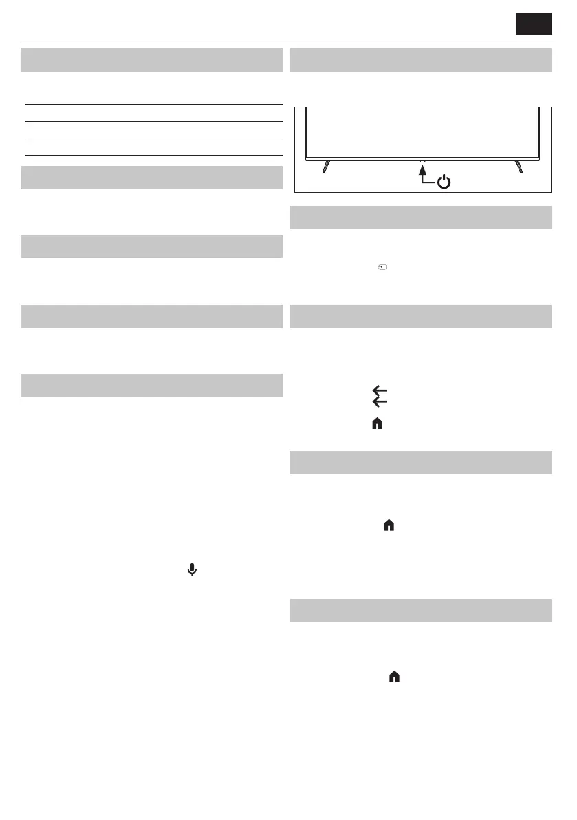 lumière LED. Appuyez sur le bouton pour allumer/éteindre le téléviseur.