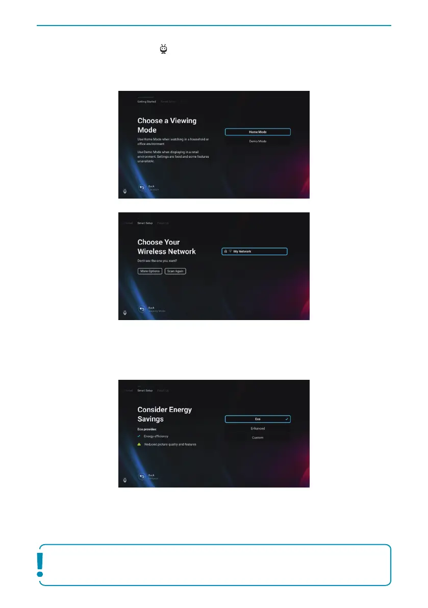 4. Set up your TV to be in Home or Demo mode. Home mode is the default setting for normal use.