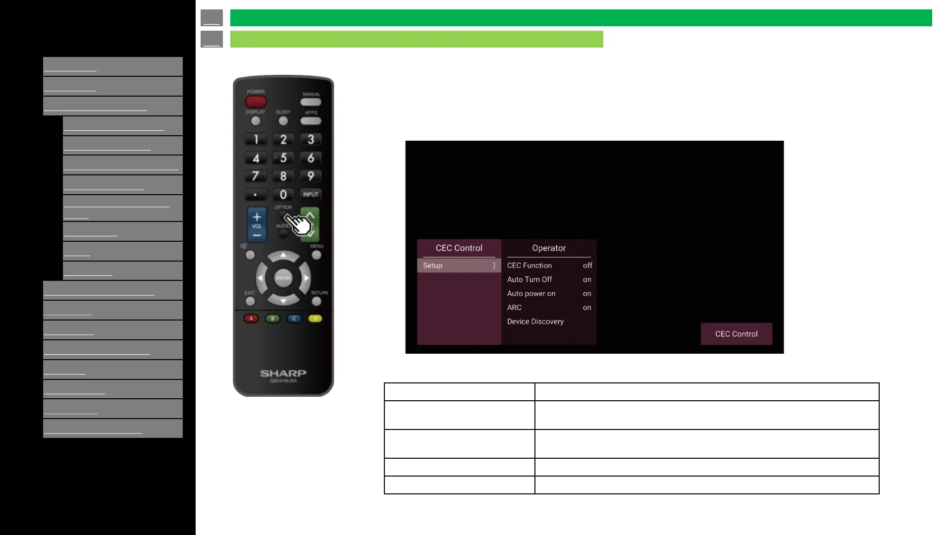 Press “OPTION” to enter CEC menu