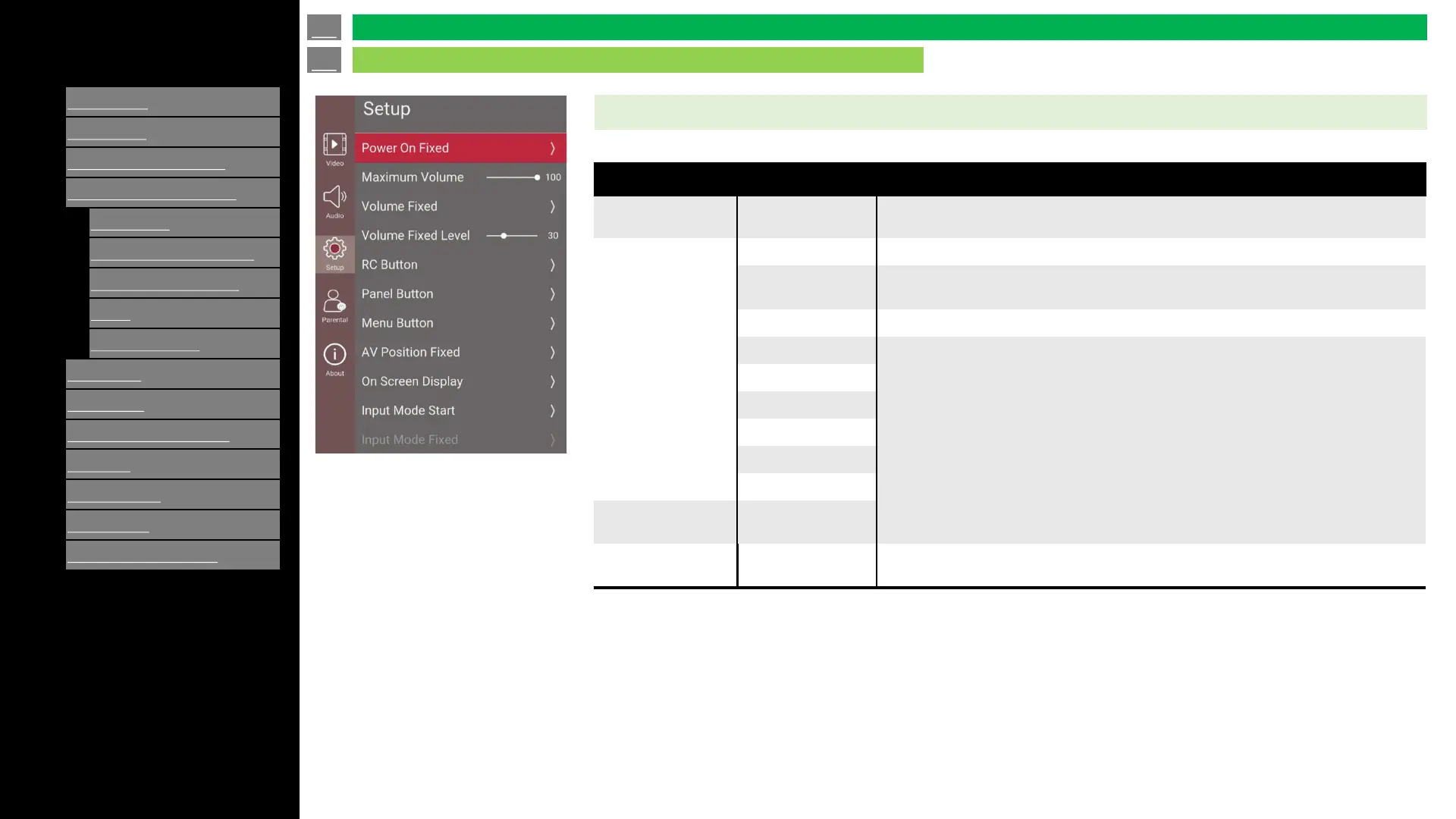 Set value of volume when “Volume fixed” is set “On”, “AC CTRL” and “BOOT CTRL”.