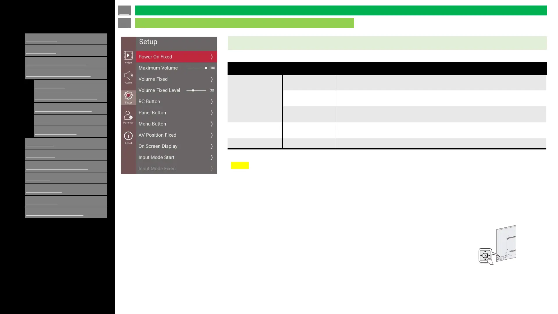 Once it is set to the “Public Mode” with “On Screen Display" is set to "off“.