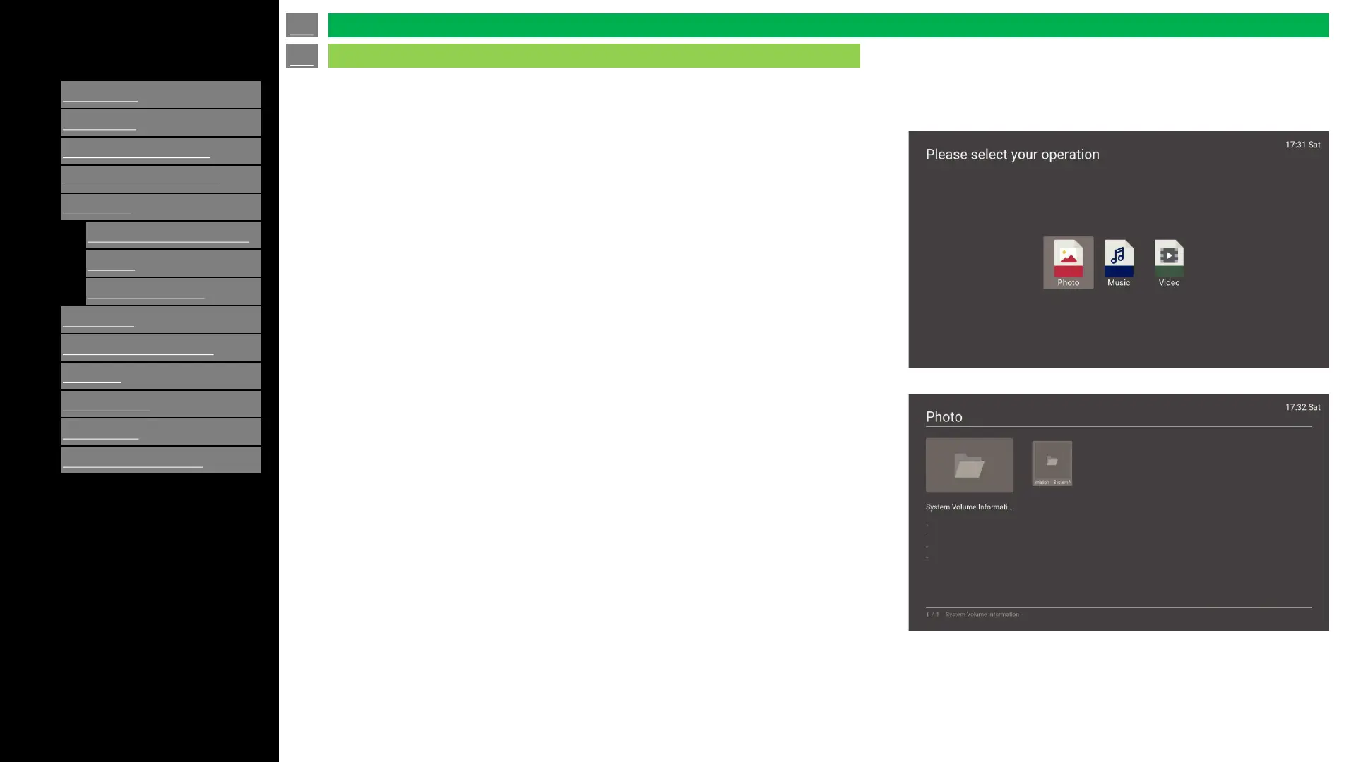 Select one of the icons (Photo, Music or Video) and it will enter the