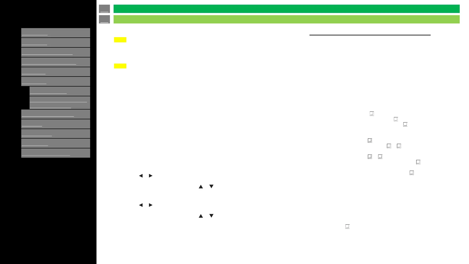 Press the or button to select the items, and enter the