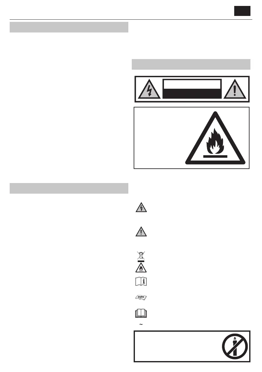 • L’appareil doit être rangé dans une pièce sans sources d’inammation