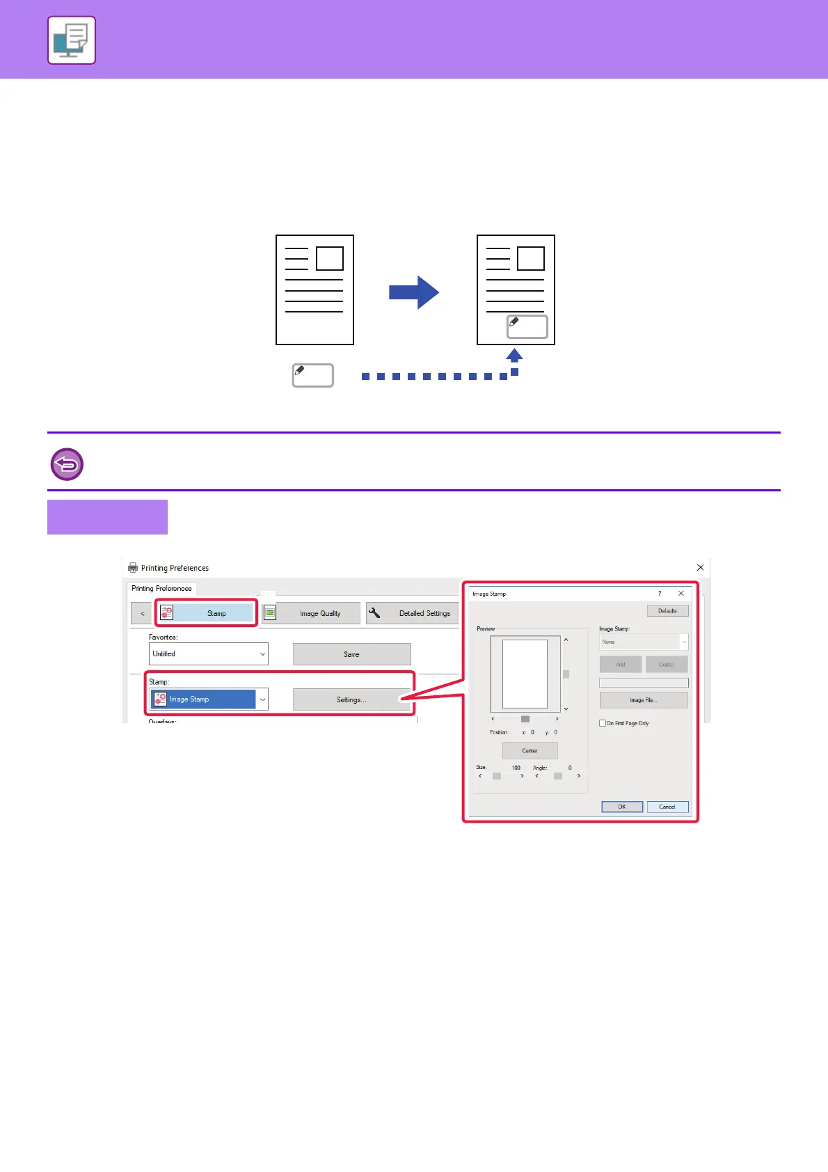 (2) Select [Image Stamp] from "Stamp" and click the [Settings] button.