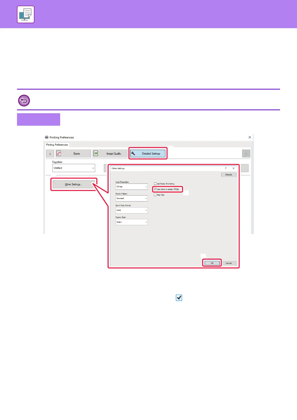(3) Click the [Use driver to render JPEGs] checkbox so that appears.