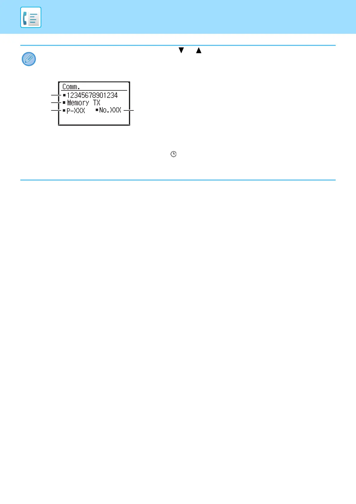 In the case of a timer transmission, the timer icon " " appears at the beginning of the transmission method name.