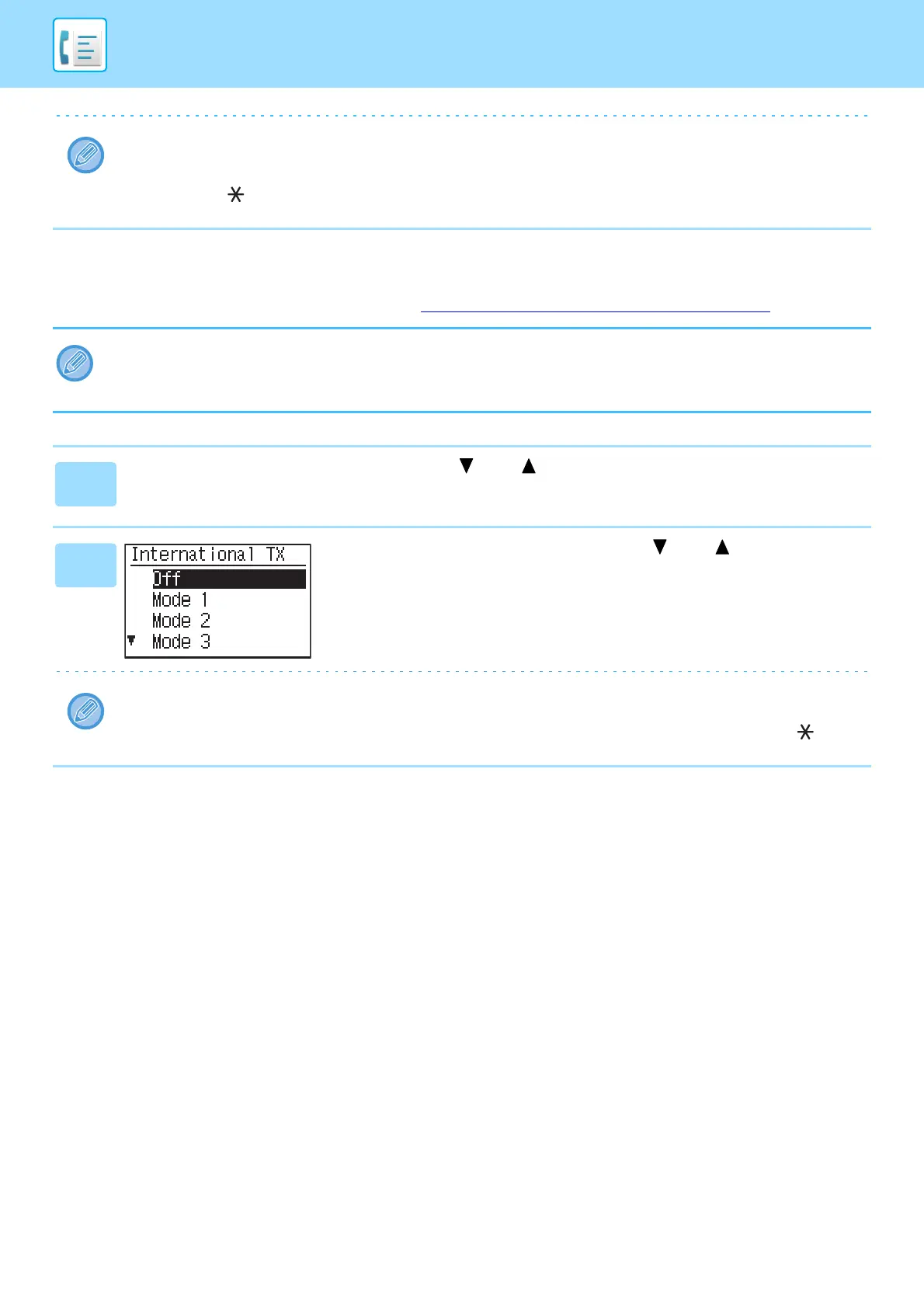 Select "International TX" with the [ ] or [ ] key press the [OK] key.