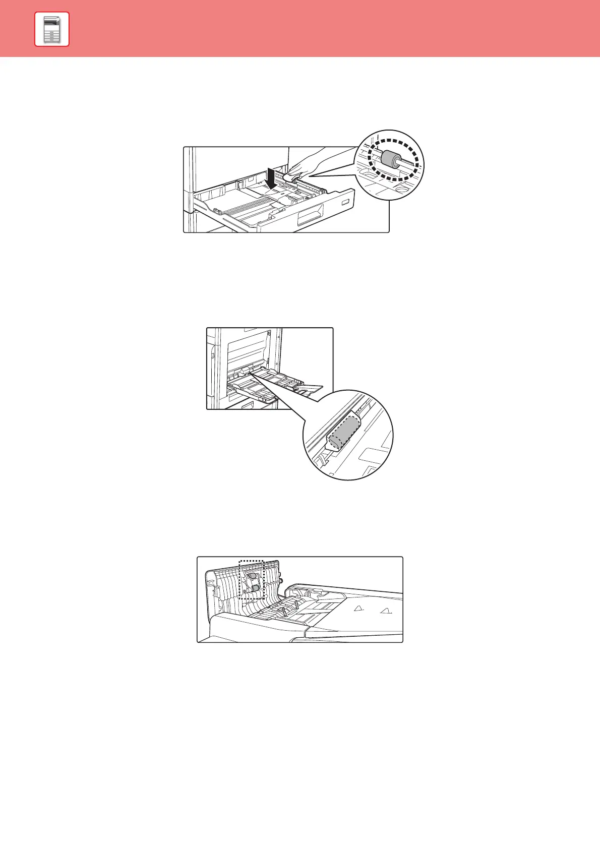 If paper misfeeds frequently occur when feeding envelopes or heavy paper through the bypass tray, wipe the surface of