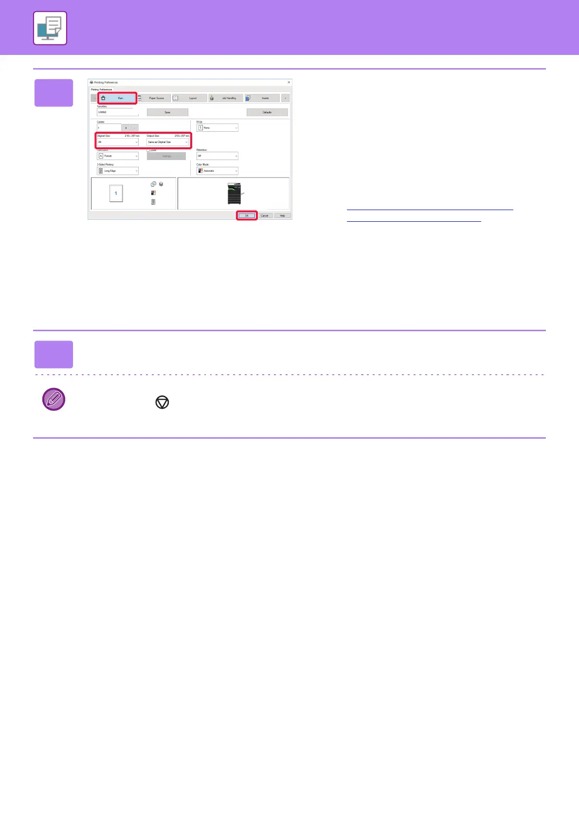 • If an "Output Size" different from the "Original Size"