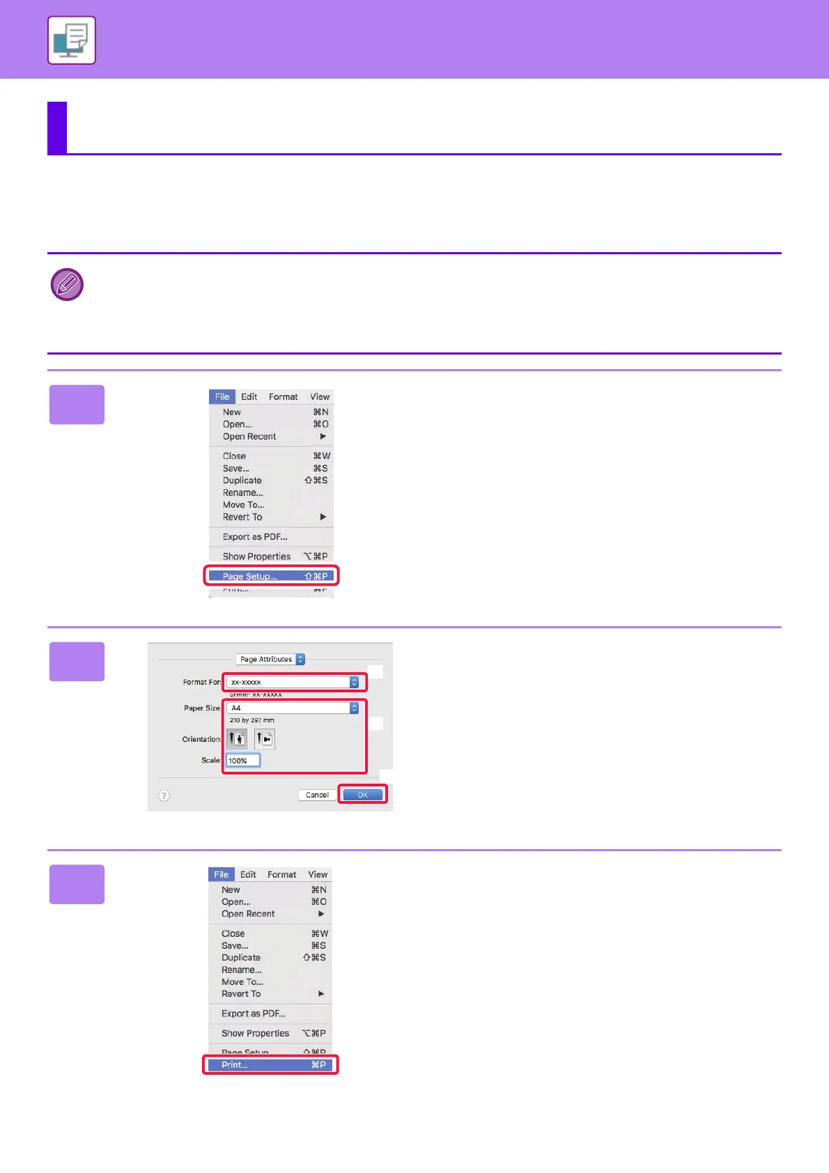• The explanations of screens and procedures for use in a macOS environment generally assume that macOS 10.12 is