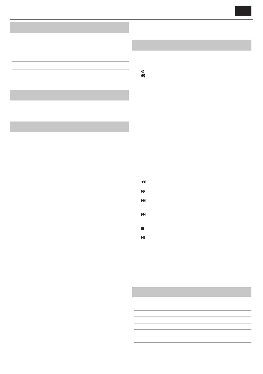 – 1x drücken, um das aktuelle Kapitel neu zu starten/2x drücken für