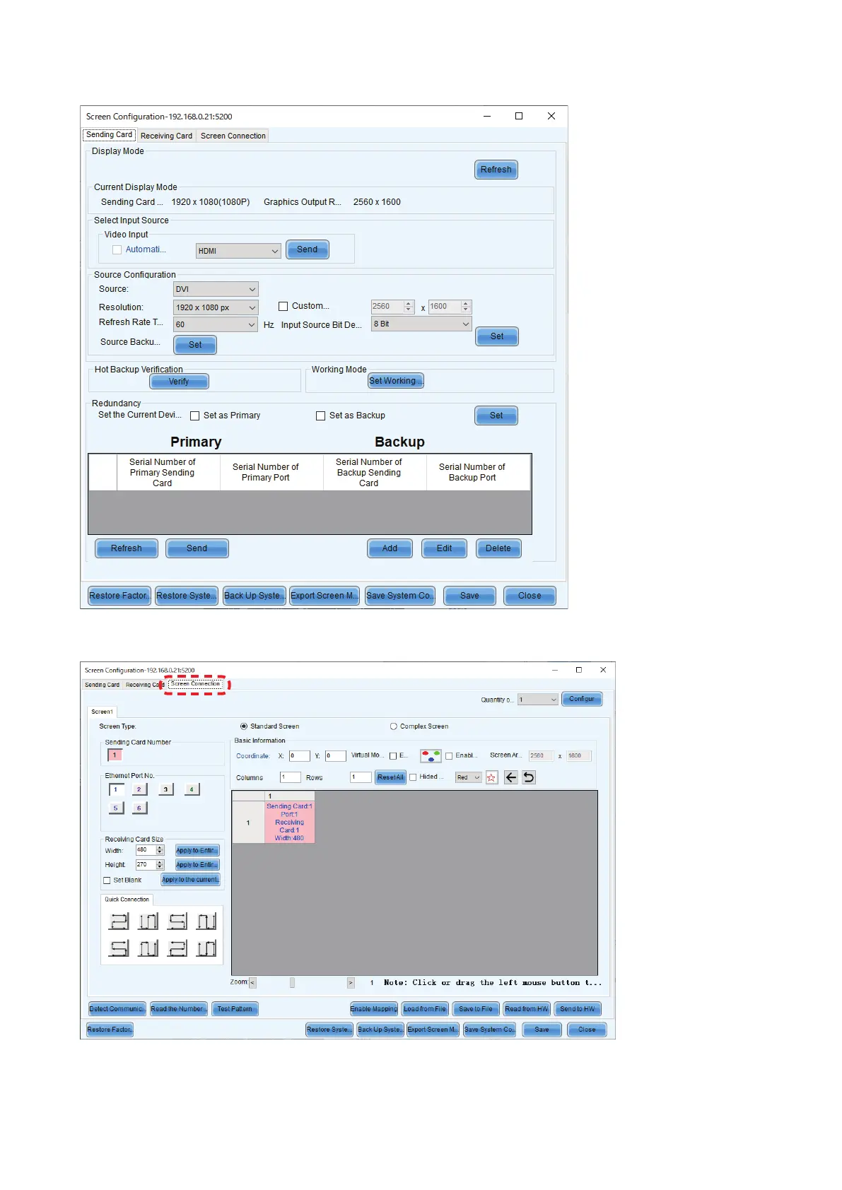 Select the “Screen Connection” tab.