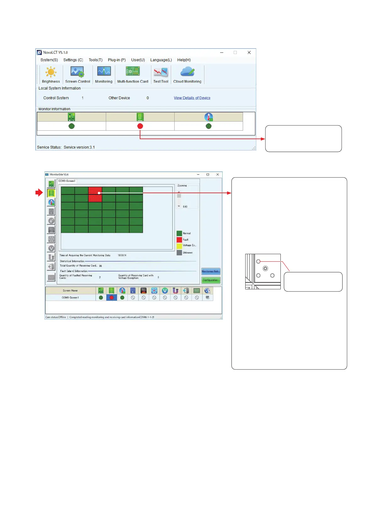 To display more details, click “Monitoring”, and then click “Receiving card” on the screen that is displayed.