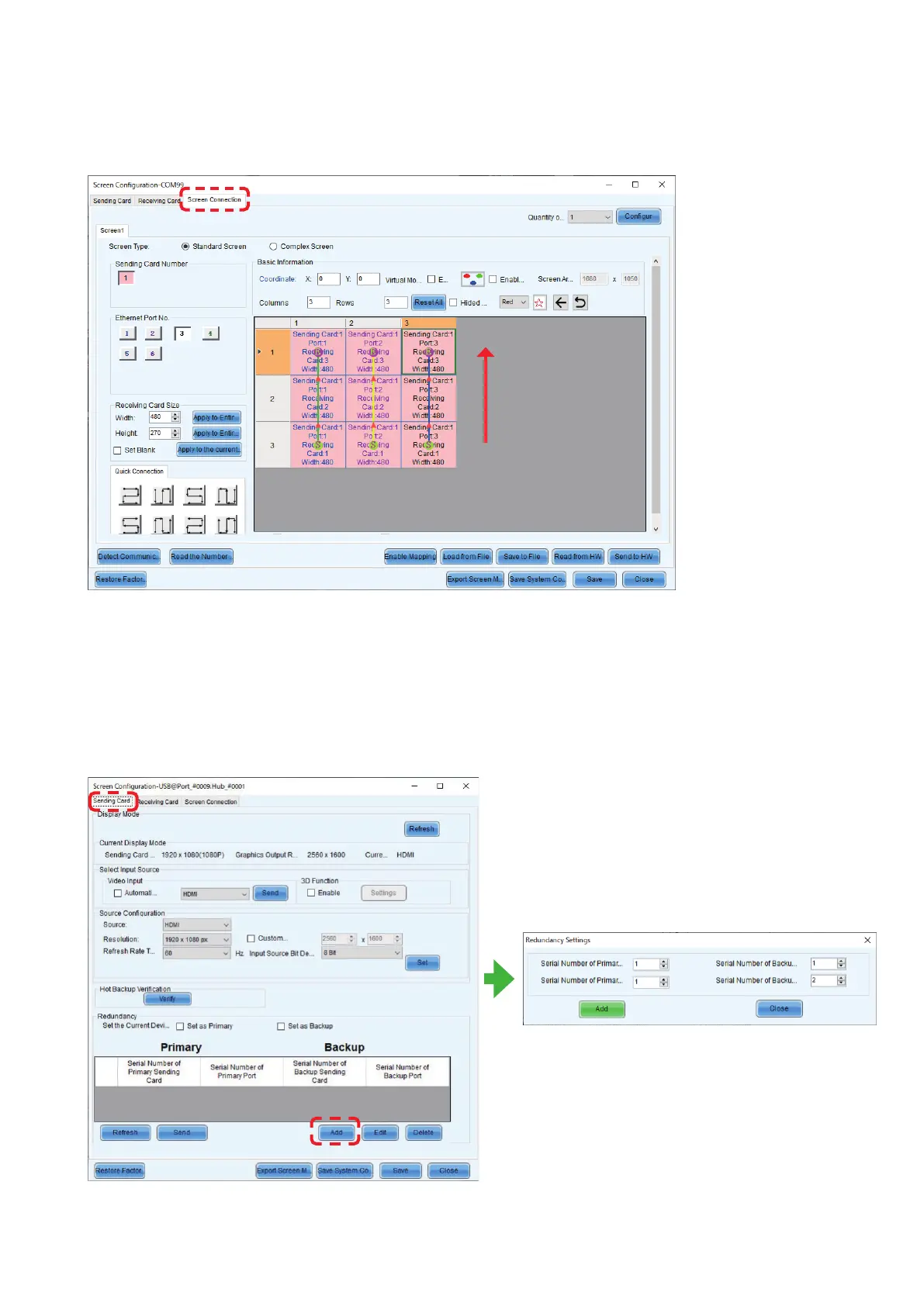 Select/enter the value for “Screen Type”, “Receiving Card Size”, “Columns” and “Rows”, and use “Ethernet Port