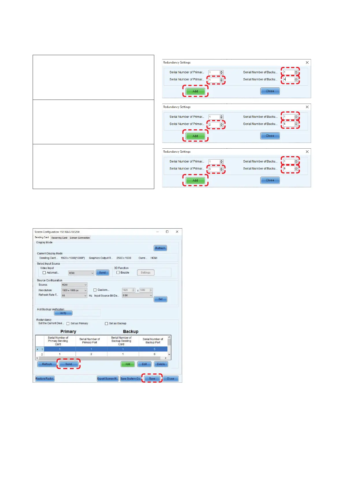 In the Redundancy Settings screen, set the Port to use on the LED controller.