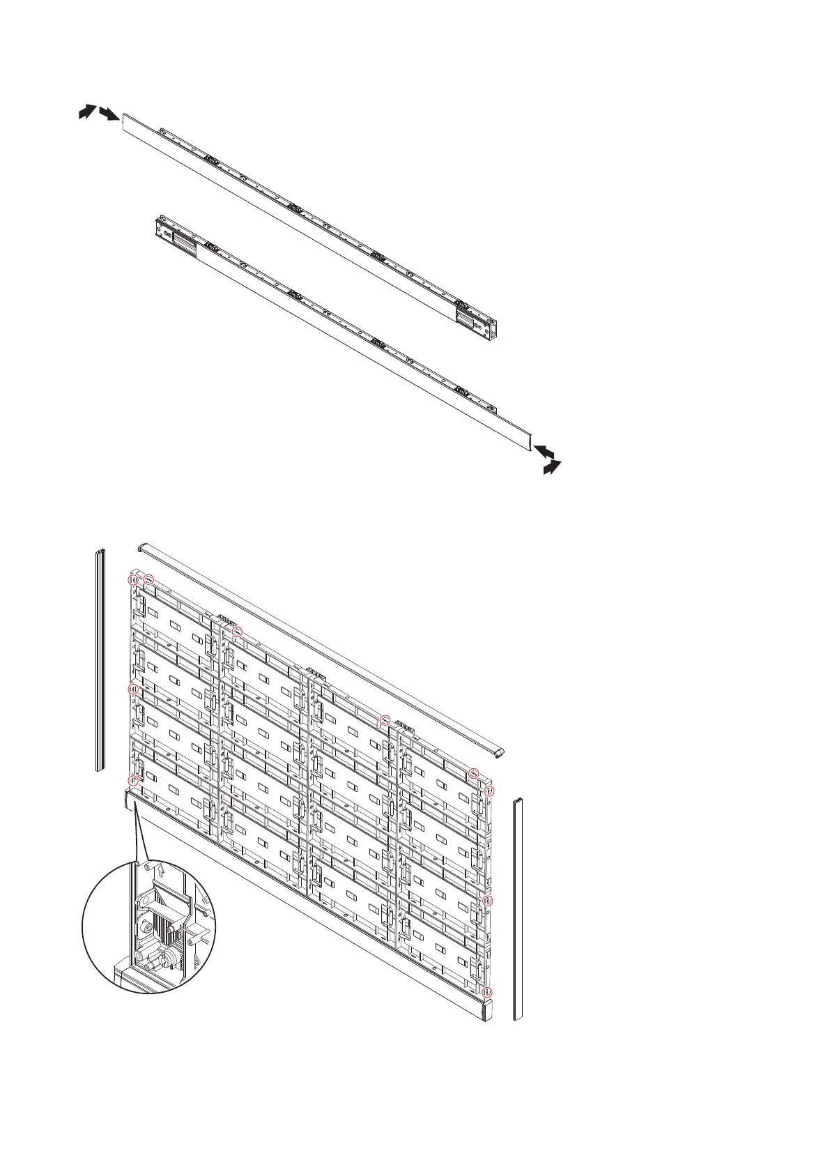 Install the corner parts to the corner frame top and install it on the top of the cabinets.