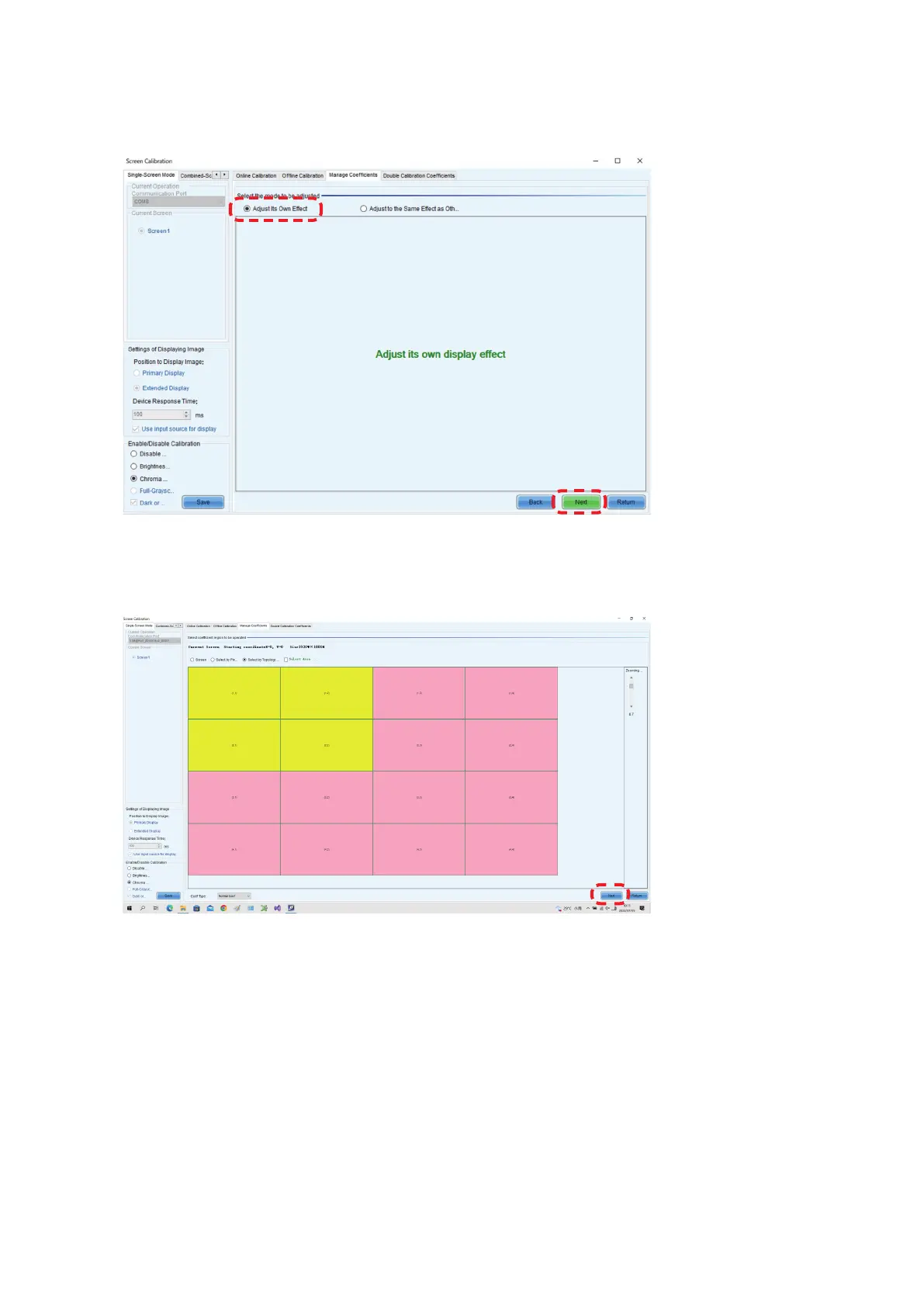 Check that “Adjust Its Own Effect” is selected and click “Next” to start the calibration settings reading