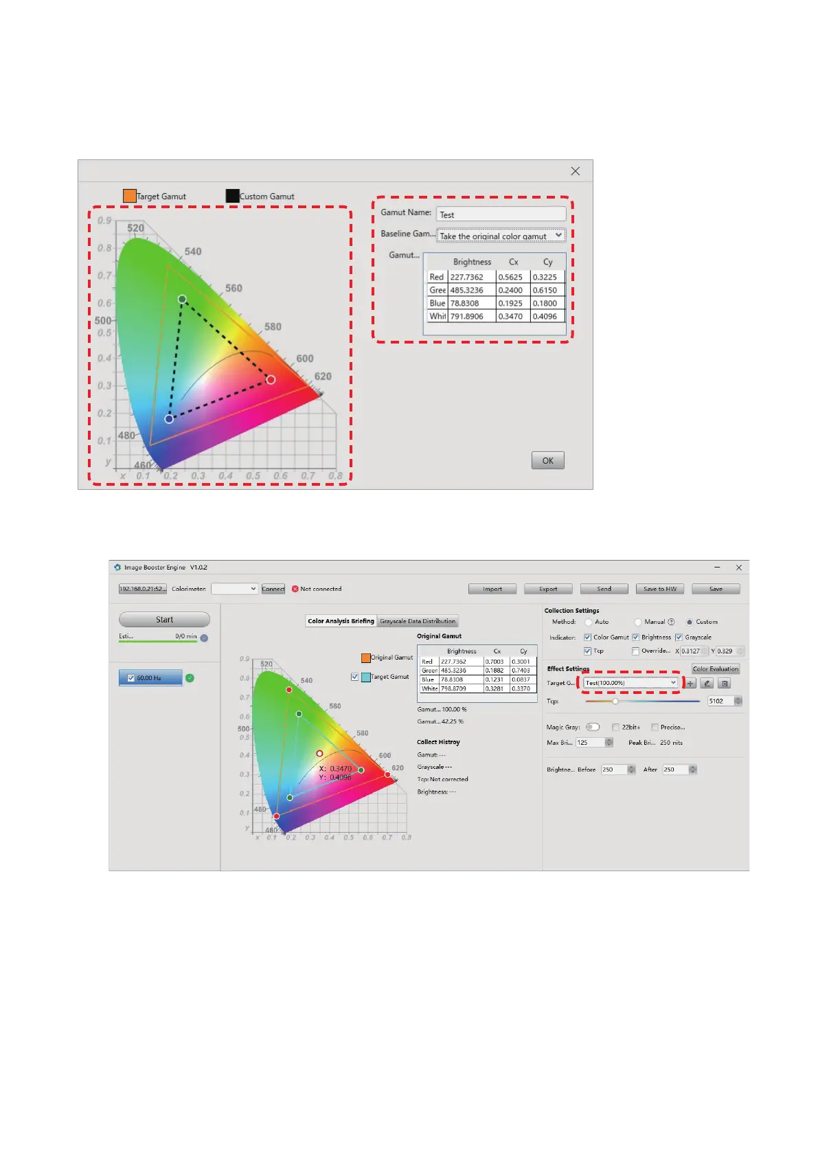 Switch “Target Gamut” under “Effect Settings”.