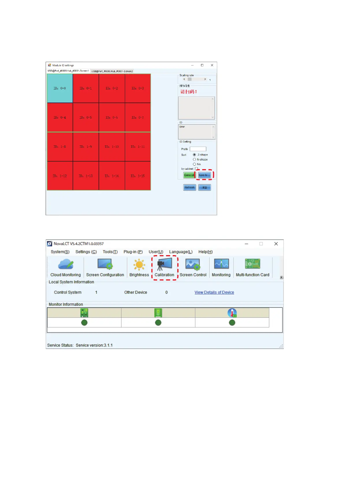 Click the “Save to H/W” button to save the module IDs to both the pixel cards and the receiving card.