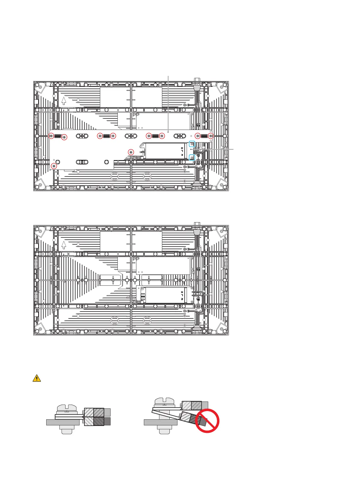 When attaching two cables with one screw, place the ring terminals of the cables back to back.