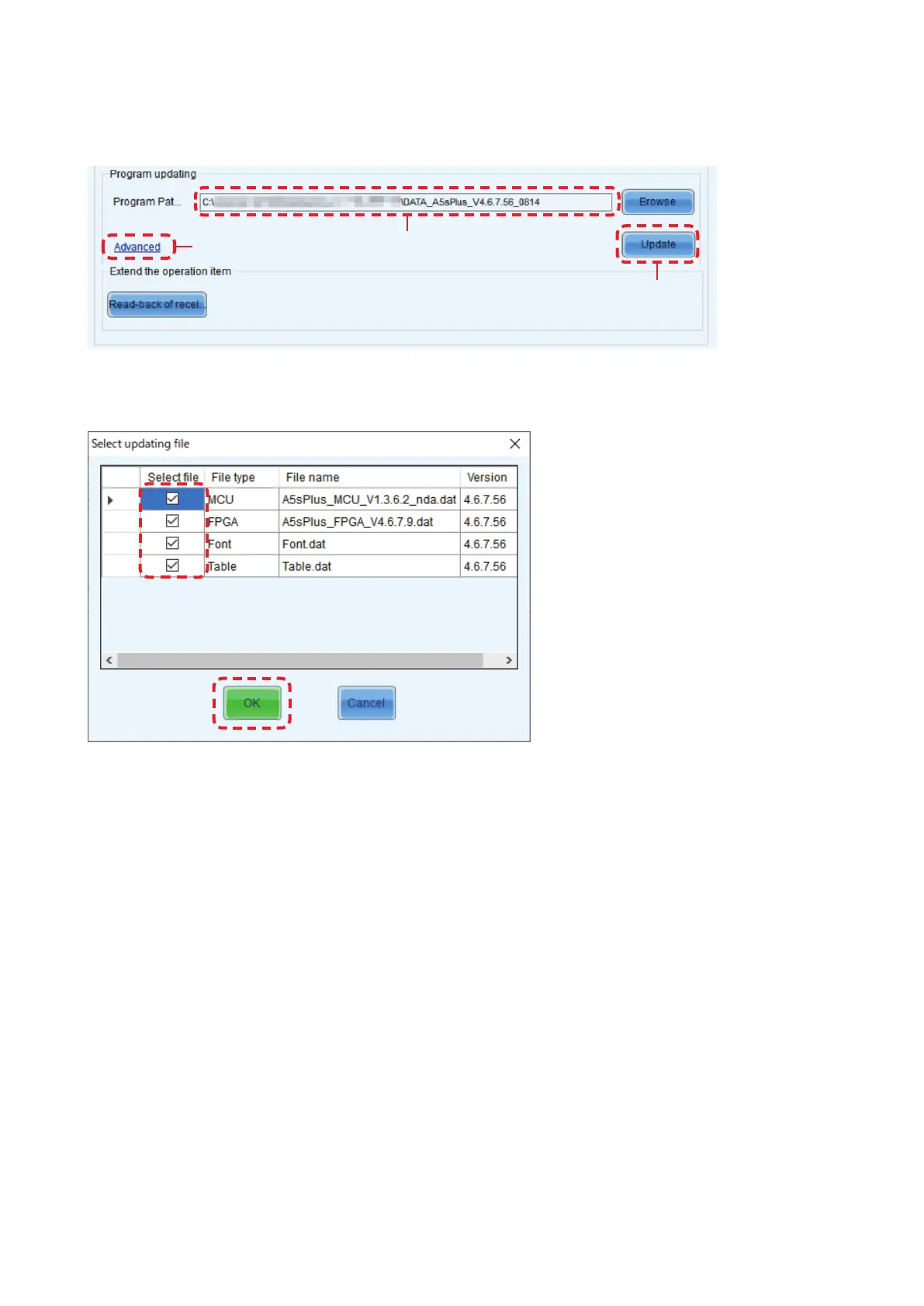 A screen similar to the following is displayed. Check all les and click “OK”.