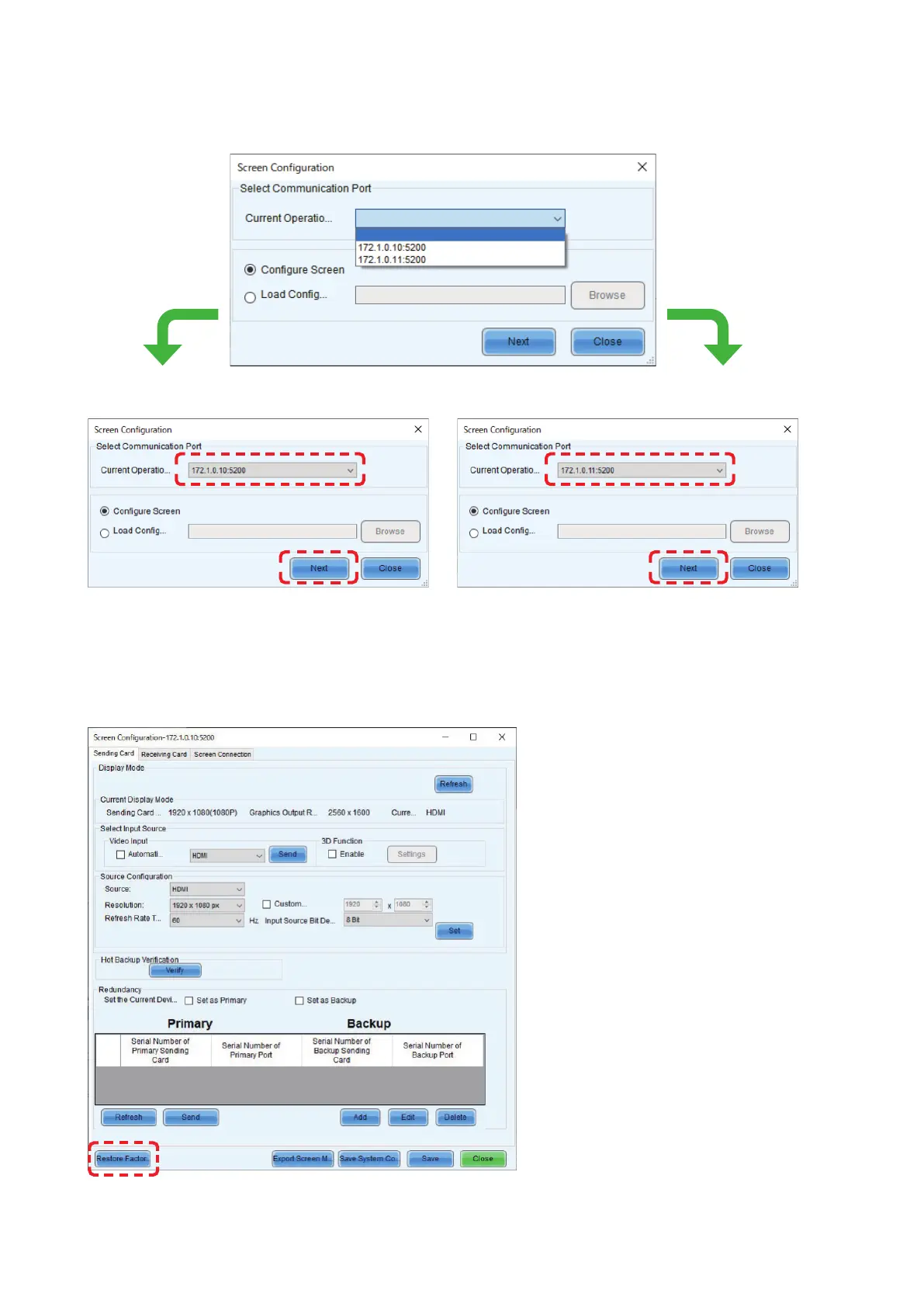 Check the port in “Select Communication Port”, select the Main (Primary) and Backup system LED controllers